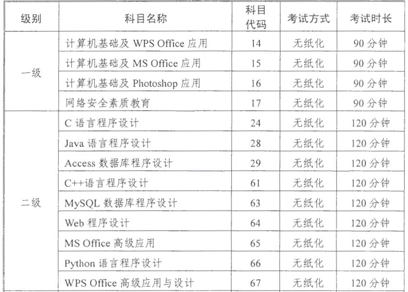 六、考试等级科目